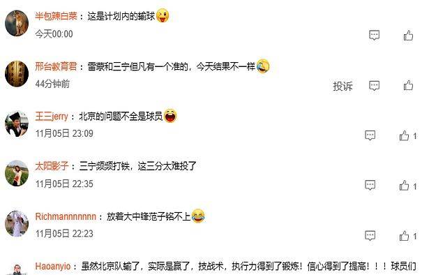 许利民指导在CBA就以“战术鬼才”著称,经常搞出一些让人看不懂的操作,比如“战略性输球”“计划内练兵”之类的。这次输给天津队,不少球迷直接开喷:“又来这套?”“北京队这输法太熟悉了,又是故意放水?”更有人调侃:“虽然输了比赛,但赢了未来,技战术得到了锻炼!”