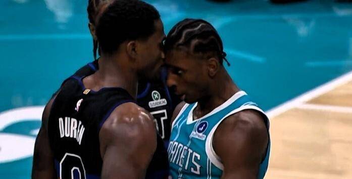 在一次进攻回合结束后,杜伦与黄蜂中锋迪亚巴特发生了口角。 两人互不相让,随即升级为肢体推搡,杜伦抬手时碰到了迪亚巴特的面部。 这个动作成为了导火索,迪亚巴特毫不犹豫挥拳反击。场面瞬间失控,黄蜂前锋迈尔斯·布里奇斯迅速冲上前为队友出头。 他大力推搡杜伦,双方球员迅速聚集在一起。 就在裁判试图介入控制局面时,更意想不到的事情发生了。