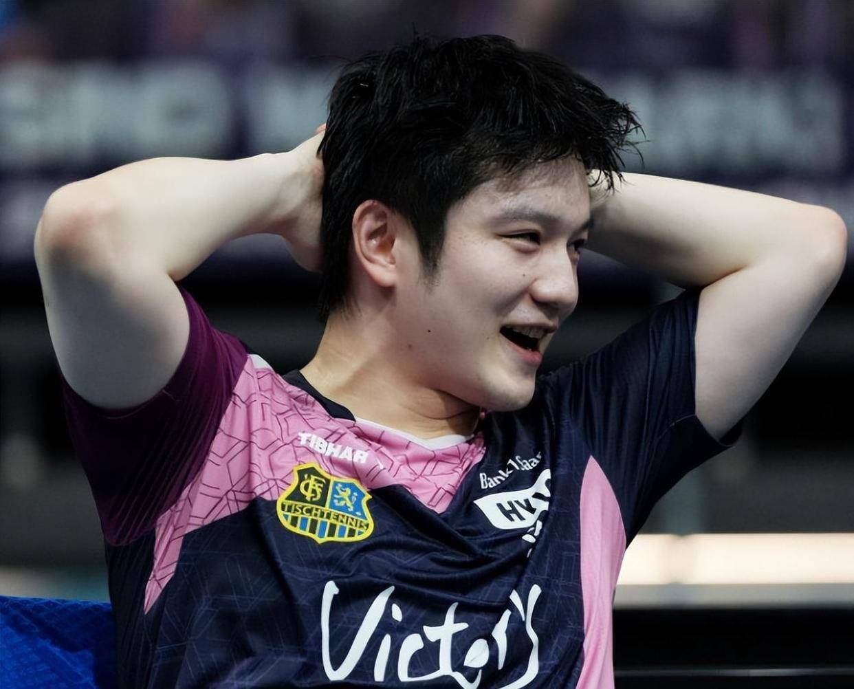 这一幕极度欢乐的场景,发生在一个看似并不轻松的夜晚。 就在几分钟前,樊振东刚刚经历了个人在2026年的首次单打失利,而且是一连两场。 在欧冠四分之一决赛第二回合的较量中,他先是在首盘对阵19岁的中国小将温瑞博。 樊振东开局顺利,以11比9和11比6连赢两局,并在第四局一度以9比4领先,手握多个赛点。 然而,年轻的温瑞博展现了惊人的韧性,硬生生以12比10逆转拿下第四局,并在决胜局的“抢六”特殊赛制中,以6比1的悬殊比分完成了惊天大逆转。