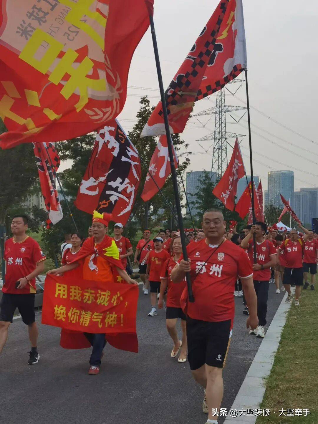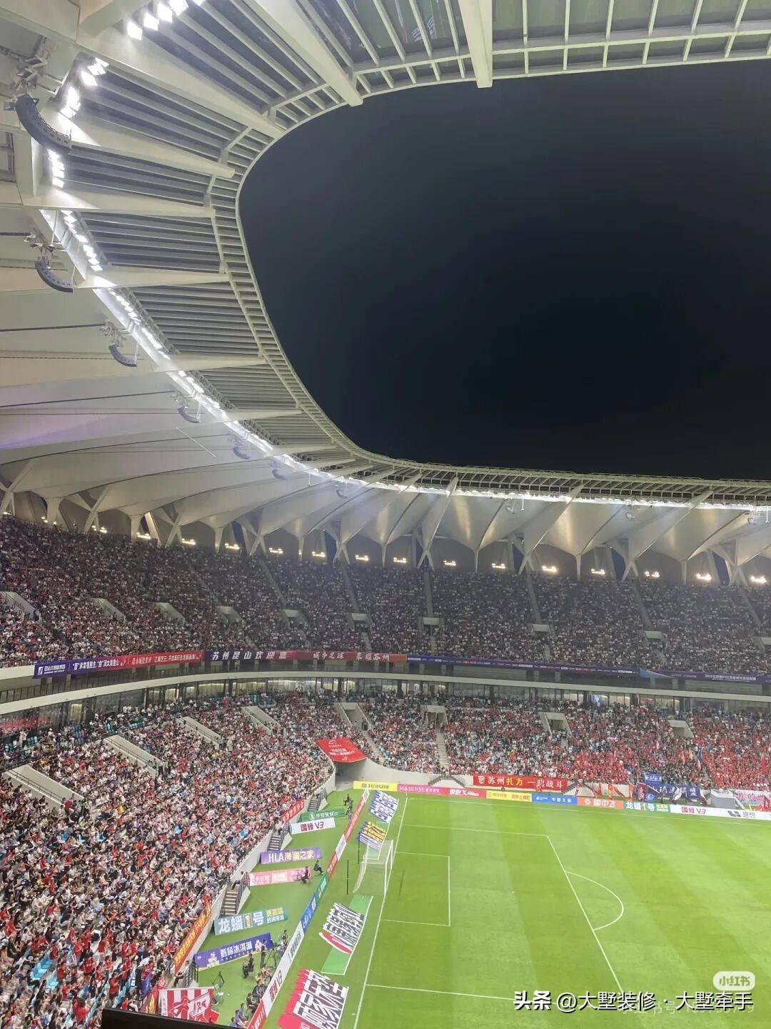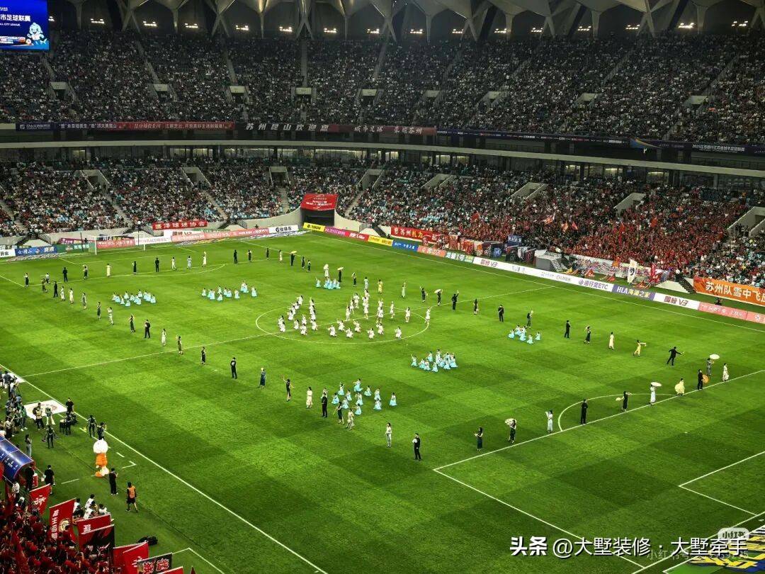 ,离开赛还有不到1个小时,观众席还不是很满。大墅心想,可能苏州队已经进不了八强了,球迷们就没兴趣来看了。不过也是大墅多虑了哦。在临近比赛前,观众席几乎是座无虚席。几万人的球场,大墅也是第一次见识。用震撼来形容,一点不为过哦。