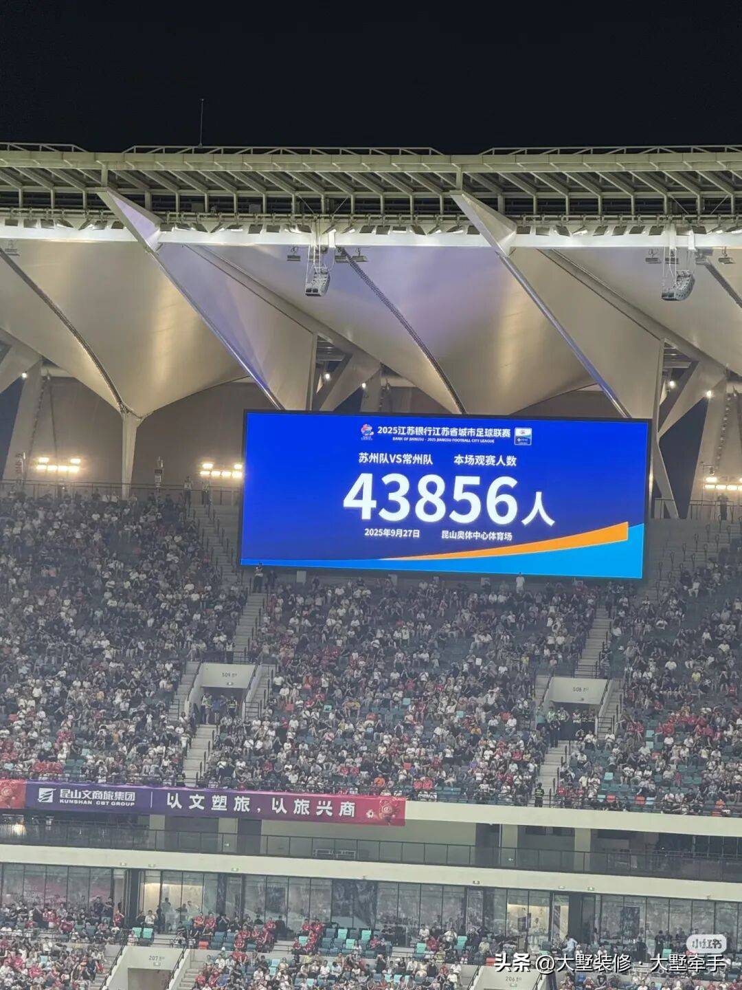 ,昆山的乐动力奥体中心,那绝对是一个高大上哦。外观很漂亮,尤其是在夜景灯照耀下。球场内更是震撼哦。尤其是几万人坐满后,绝对是文字表达不出来的感觉。只有身临其境,才能真正体会到。这让美妈这个伪球迷,让大墅这个真球迷,都被这氛围感染到了。这就是足球该有样子,。只有参与的人多了,让大家都爱上了足球,中国的足球才有希望。也希望协不要来插手,让苏超一直火爆下去。