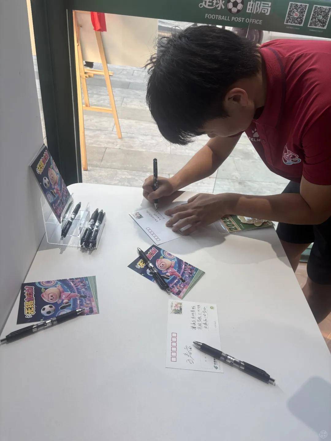 不仅如此,球队成员还在明信片上写下寄语,届时,这些明信片将寄给梁溪区东林惠畅实验学校、梁溪区明德实验学校、无锡市广益中心小学、东林中学桐华分校4所足球特色学校的同学们,勉励他们在足球的世界里勇敢追逐梦想。
