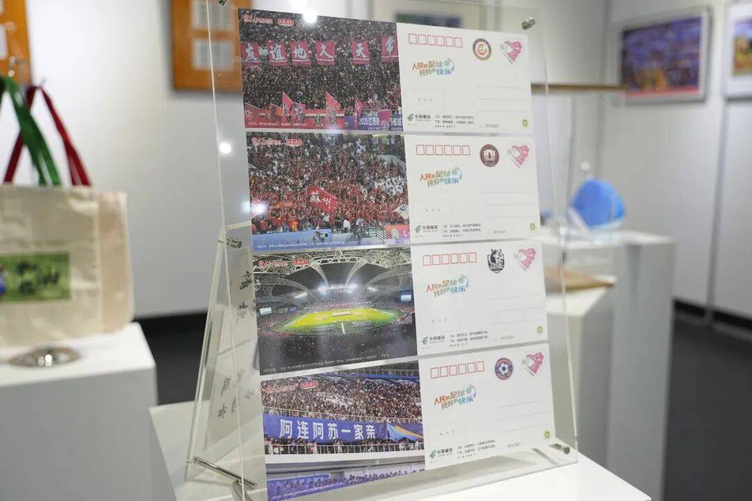 当足球的激情邂逅书法的风骨,当摄影的光影交融楹联的韵味,“人民的足球,纯粹的快乐”便在这方寸明信片上凝为永恒。据悉,本次活动面向全社会正式公开首发“苏超”明信片套装,每套共14枚,其中13枚分别献予江苏十三市的球队,另1枚是对整个“苏超”赛事的热烈礼赞。整套明信片设计精美,匠心独运。明信片主体采用宣纸裱卡纸工艺,楹联以宣纸书写后精心装裱于卡纸外框,既显典雅又兼具稳固。邮资面以摄影画面定格“苏超”的精彩瞬间,邮资旁依次点缀各地市队徽,包装的镂空插套设计,隐约透出内页摄影画面,整体视觉精美考究,突显独特气质。