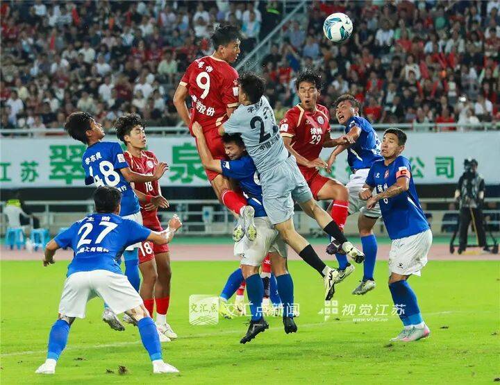 8月2日 徐州“苏超”第8轮,徐州队主场迎战扬州队2∶1获胜,徐州队9号姜伟头球扳平比分。陆长磊 摄